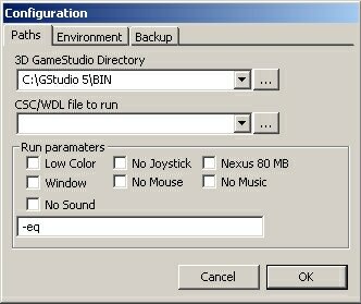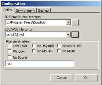 configure the two paths: 3D GameStudio Directory and script file to run.