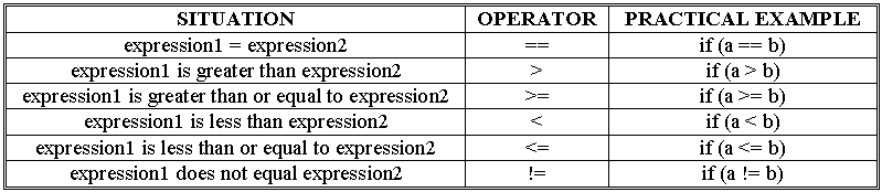 Take a look at the table to see how you can compare two different expressions (you can use the same table for "if", "while", etc):