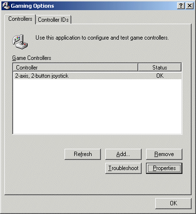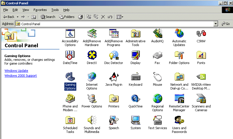 That's Windows 2000's control panel so you will see a slightly different picture if you are using a different version of the O.S. Double click "Gaming Options" to open it: