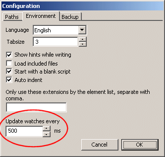 I have tried to catch the moment when plane_pan was close to 360 degrees but the steps are too big because the watches are updated every 500 ms! Let's try to update the watches more often! Exit the engine and switch to SED; choose Options / Preferences / Environment: