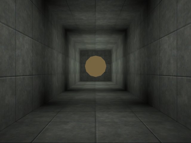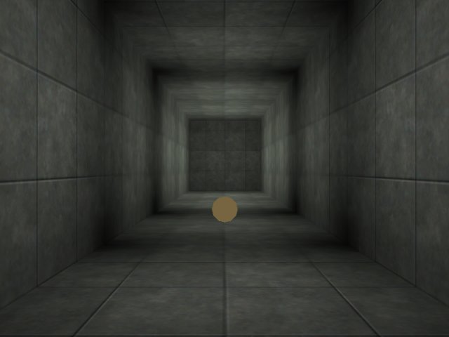 This c_move instruction moves an entity and performs collision detection during the movement. This means that our sphere will stop when it collides with the walls, with the ceiling, with other entities and so on, which is a good thing. Start WED, load the work18 file (if you haven't done that already) and then run the level using the script18_2 file: