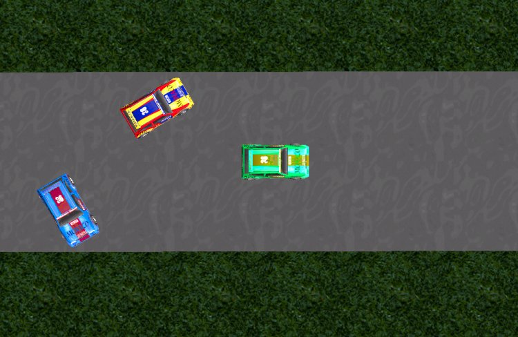 Now why did that happen? Well, we are only using absolute_speed, and vector(3, 0, 0) tells the car to move along the x axis, because only the x component of the vector (3) was set to a non-zero value. Guess what? The x axis points towards the right side of the screen, so that's where this blue car is heading.