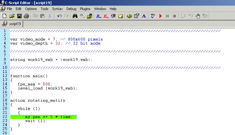 Did you know that your potential customers have different PCs? Oh, you knew that already? Well, then maybe you have thought that your game will run at different frame rates on their PCs. How and why should this trouble you? Start WED, open the work19 level file, build it and run it using the script19 file:
