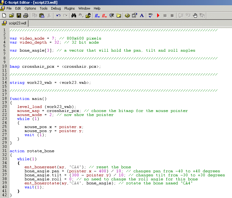 Fear not, for the difference between this action and the "bone_test" action from the 22nd workshop consists of only 4 lines of code. We'll discuss the entire action again briefly; this way you (lazy boy) won't have to read the previous workshop one more time.