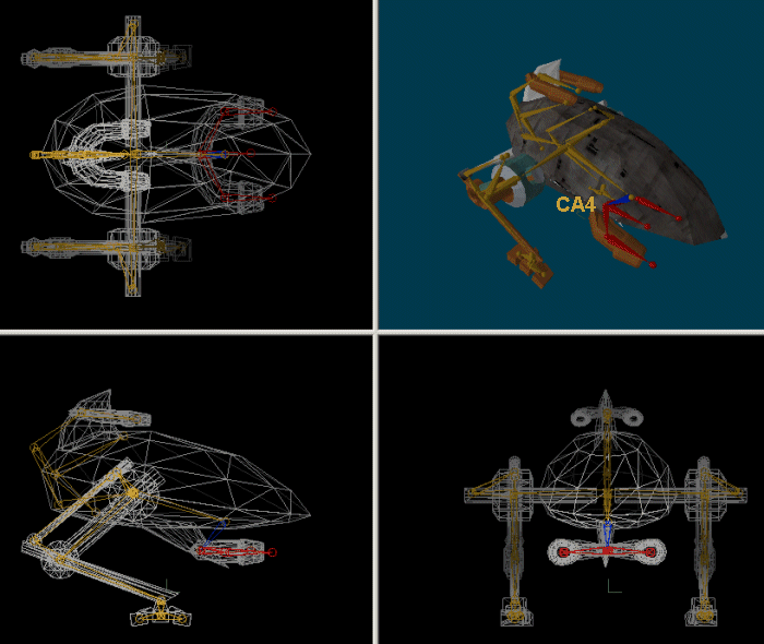 The first line of code inside the "while (1)" loop resets the bone to its default scale and orientation (angles). Here's the default position of the "CA4" bone for our robot.mdl in Med:
