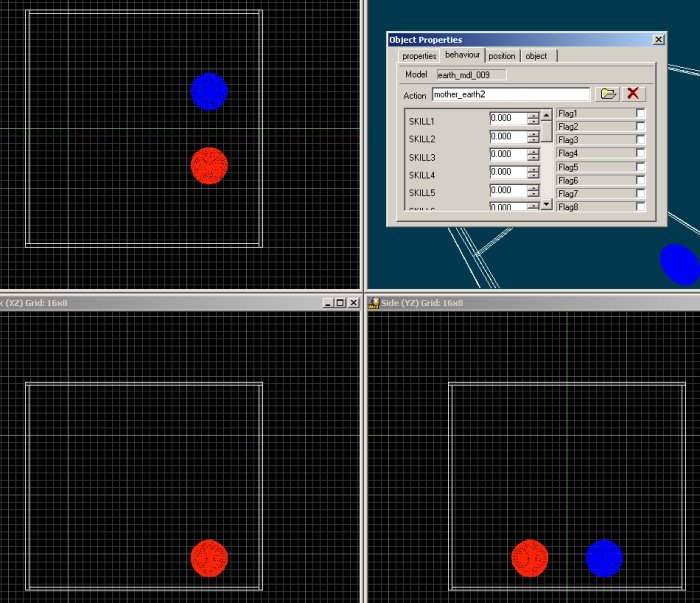Now add another sphere model to the level and attach it the "mother_earth2" action. Take a look at the shot below to see the approximate position of the second model in WED: