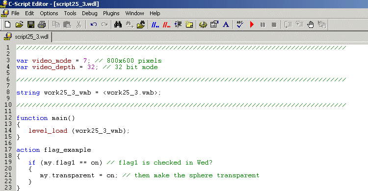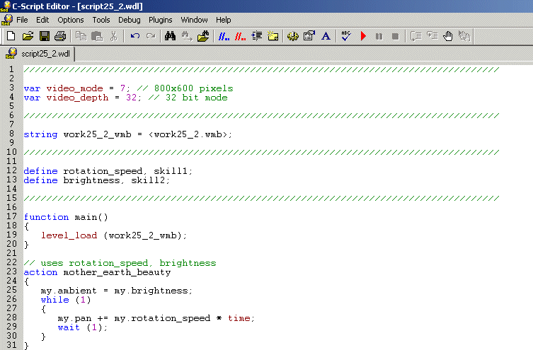 One more thing: you can't use names that include spaces, like "define my health skill3;" or "// uses players armor", but I think that you knew that already. That's all there is to know about these comment tags. There are more of them, and if you are a "click-games-together" person you already know how to use them. You'll see their description in the C-Script manual anyway.