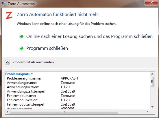 I have the same problem like yosoytrader. When I test a more complex script with WFO and TICKS, at the end just before the result should pop up, Zorro crashes with the attached error message. (The test is on a normal PC and DEP is not enabled)
