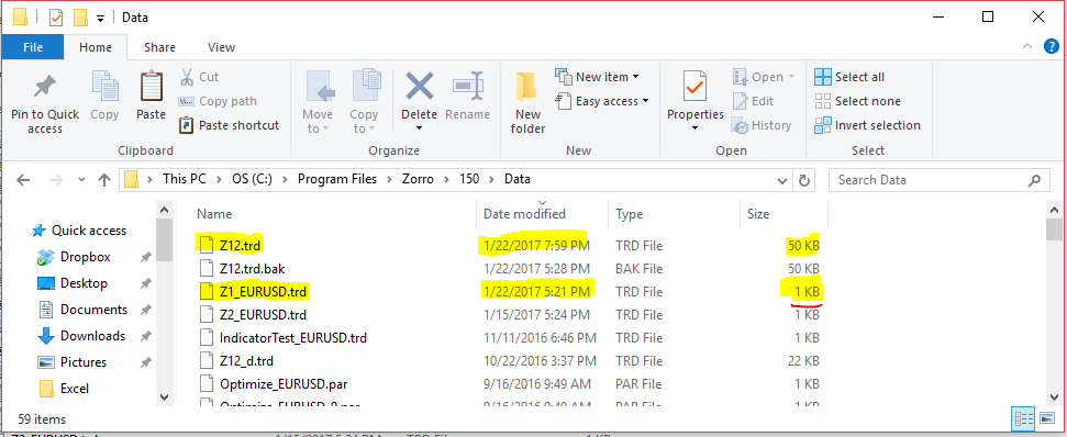 As evidence see the attached screen shot of my logs directory. Both Z1 & Z2 file have zero size but the Z12 file is much larger. I ran the trade inspection script from the manual on both files and indeed the trades are in Z12.trd and the other files have no trades. I honestly have not gotten to testing/running Z12 yet. I only use Z1 & Z2 so far.