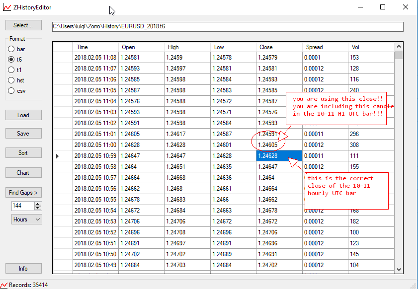 problem #1 - bad bar aggregation - Zorro 1.66 - downloaded the EURUSD data from FXCM using Zorro's Download script. - aggregated to Period = 60 - bars are close but not the same as FXCM bars. Clearly not the same - see picture. - surprising bad bug for an algo-trading software - suspect: 1min offset bug due to Zorro timestamp the end of the bar while FXCM timestamps the start of the bar -- only a suspect - installed Zorro 1.74 - could not re-test because... problem #2 the Download from FXCM only worked once - the login isnt successful - red light. - FXCM demo account works with Trading Station.