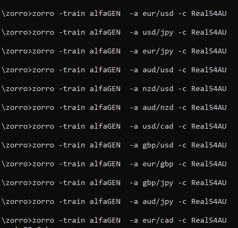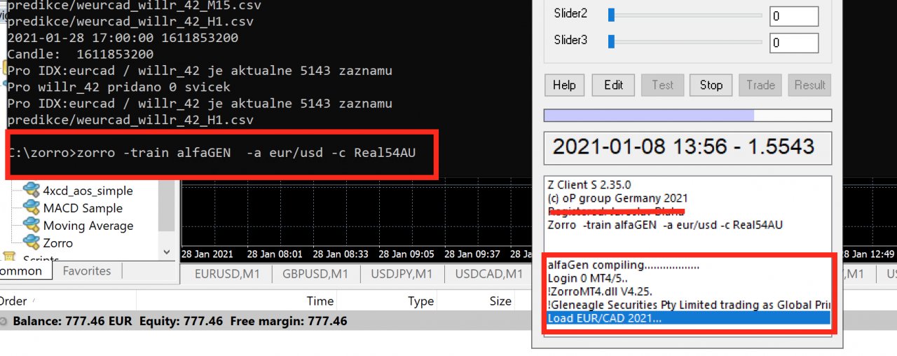 a) start Zorro client - and start trade with any symbol b) close / is not neccessary / c) start client from command line - with other symbol. Client start with last symbol from point a)