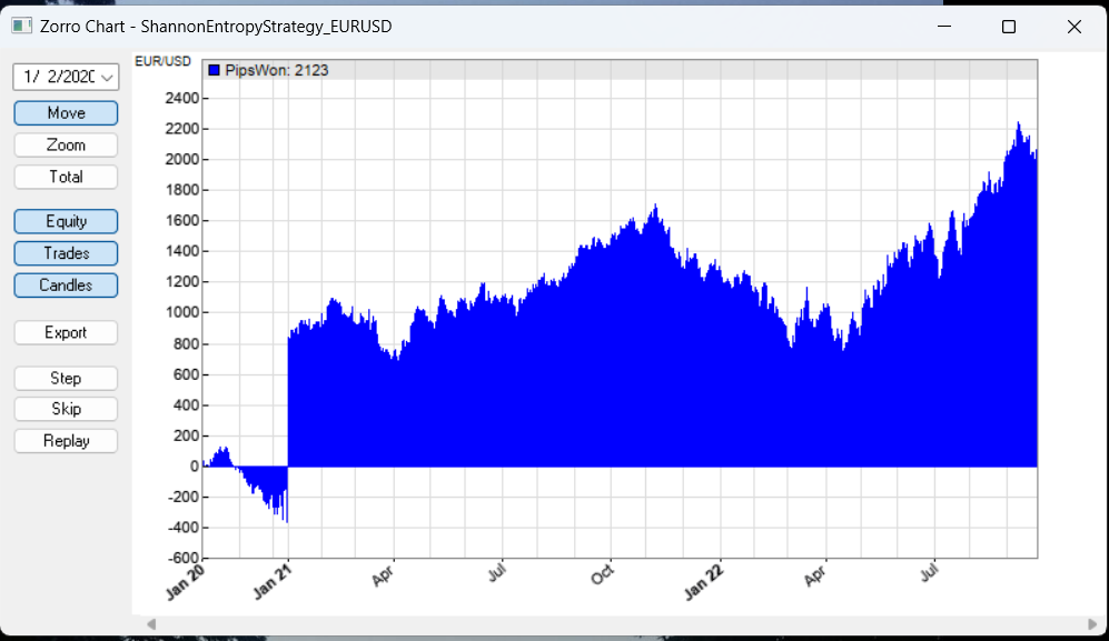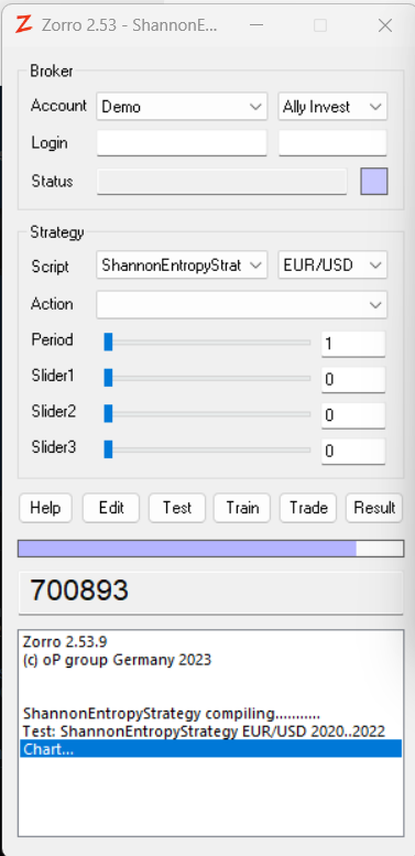 If I test the strategy and stop it before Zorro has worked through the whole time series, I get the graph in the screenshot attached; otherwise, Zorro crashes before completing the calculation, without throwing any error.