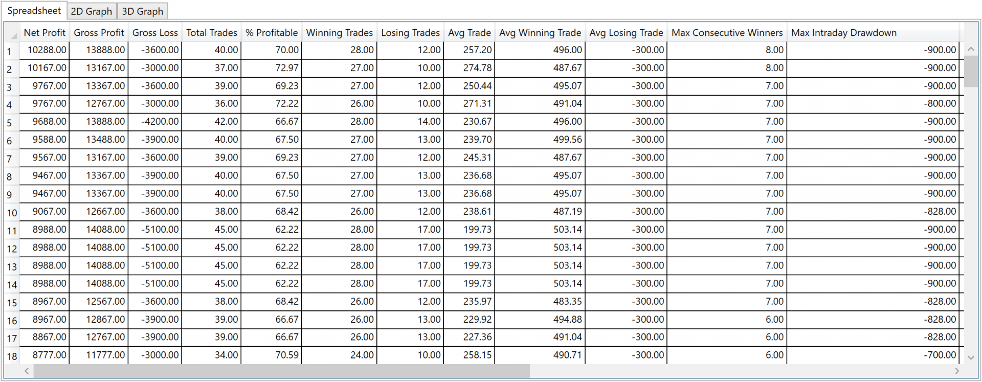 Similar to the genetic optimization results of some trading platforms such as Tradestation, Multicharts etc.. (see attached pics)