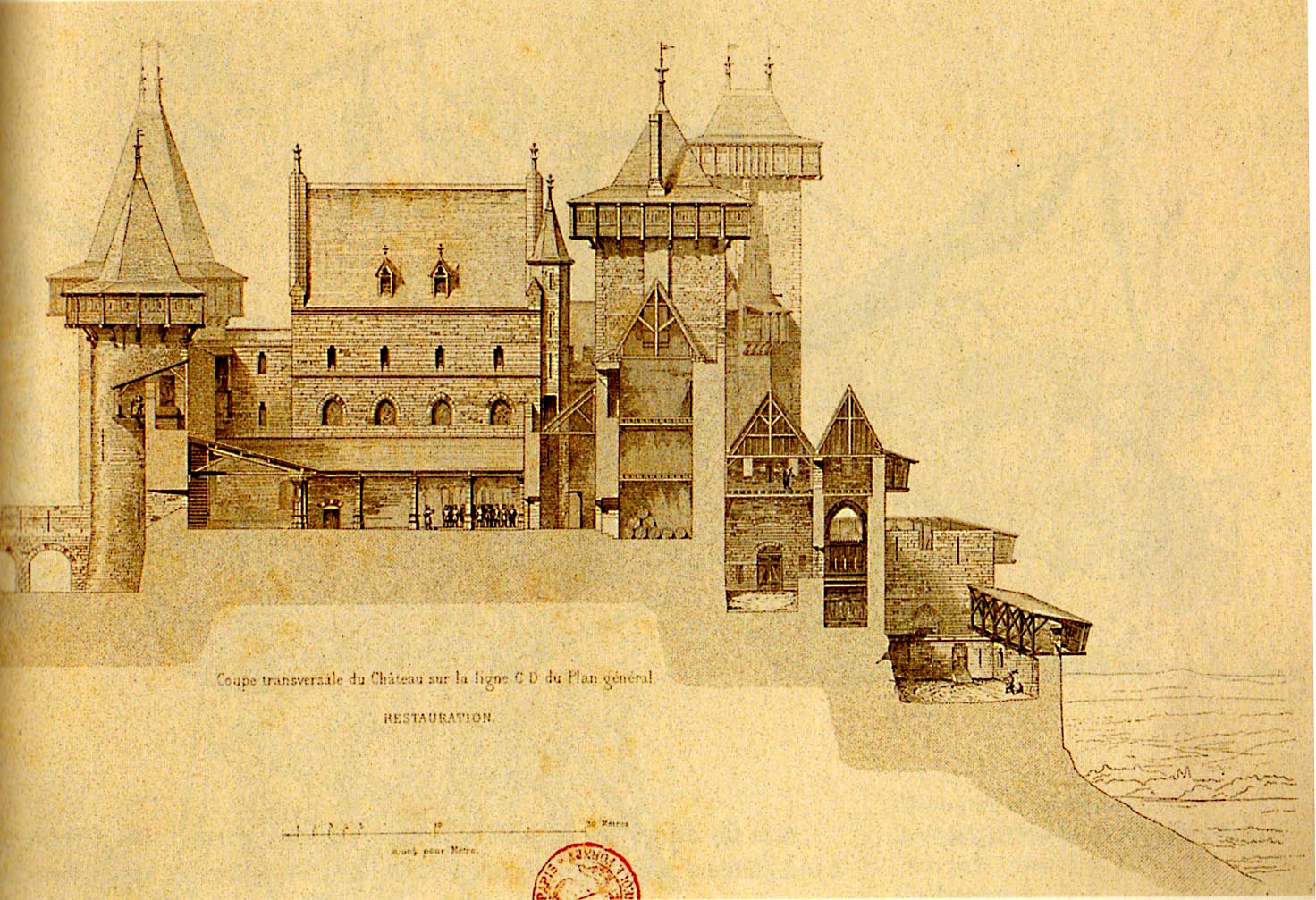 Eugène Viollet-le-Duc. Ein Architekt, der von 1814 bis 1879 lebte, und der im Auftrag von Napoleon III. die wichtigsten mittelalterlichen Gebäude und Städte in Frankreich restaurierte. Neben seiner Arbeit als Architekt beschäftigte er sich auch mit allen Dingen, die mit dem Mittelalter zu tun hatten, und fertigte jede Menge Rekonstruktionszeichnungen an (neben Gebäuden auch von Möbelstücken, Alltagsgegenständen, Kleidung, etc). Ich habe mehrere Bücher von ihm, darunter auch die 720-seitige "Bibel des Mittelalters", wie ich es gerne nenne. Ein mittelalterliches Lexikon (