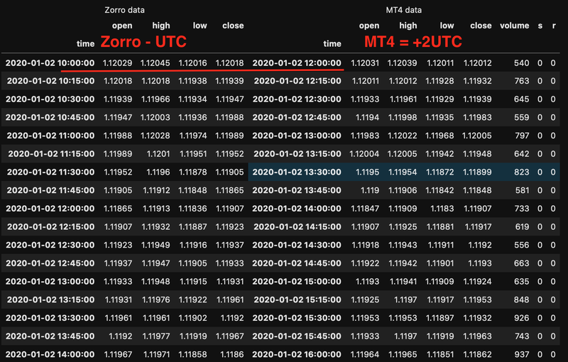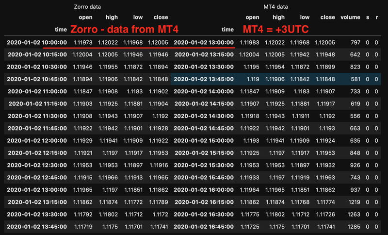 I thinking, is a problem with DST. Because now is server +3 hour's, but in the 2020/01/01 to change DST only +2hour's. For system used short period ( Timeframe < 240 ) don't depend. But for system working with H4 and D1 must have a different results. that's all folk... P.S: if anybody want, I send jupyter script for playing on sand