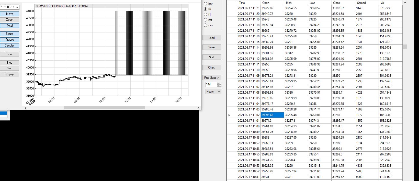 I attach capture image, price data looks ok but bactesting result show wrong chart. also cause wrong backtesting result.