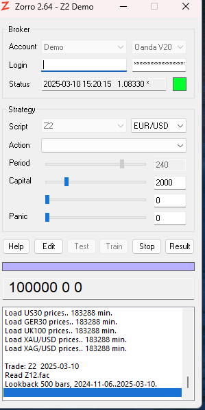 My next question would be, how often can I expect it to trade? I have had it running for some hours with a virtual trade to Oanda, but nothing happens after the history is loaded.. I understand the interval is 240, so not too much action should happen at once. But after two days, I should see something happening right?
