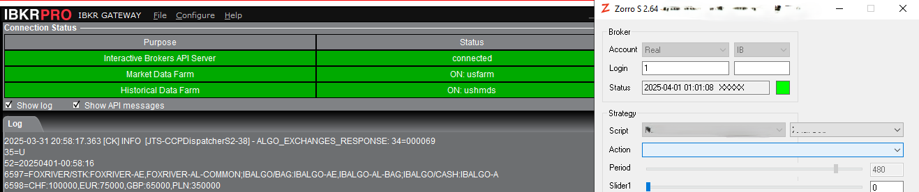 I'm having an issue where Zorro doesn't reconnect to the IBKR gateway after the daily restart. As you can see status is green, but no port is open or data sent/recieved. I've tested restart during market hours and outside.