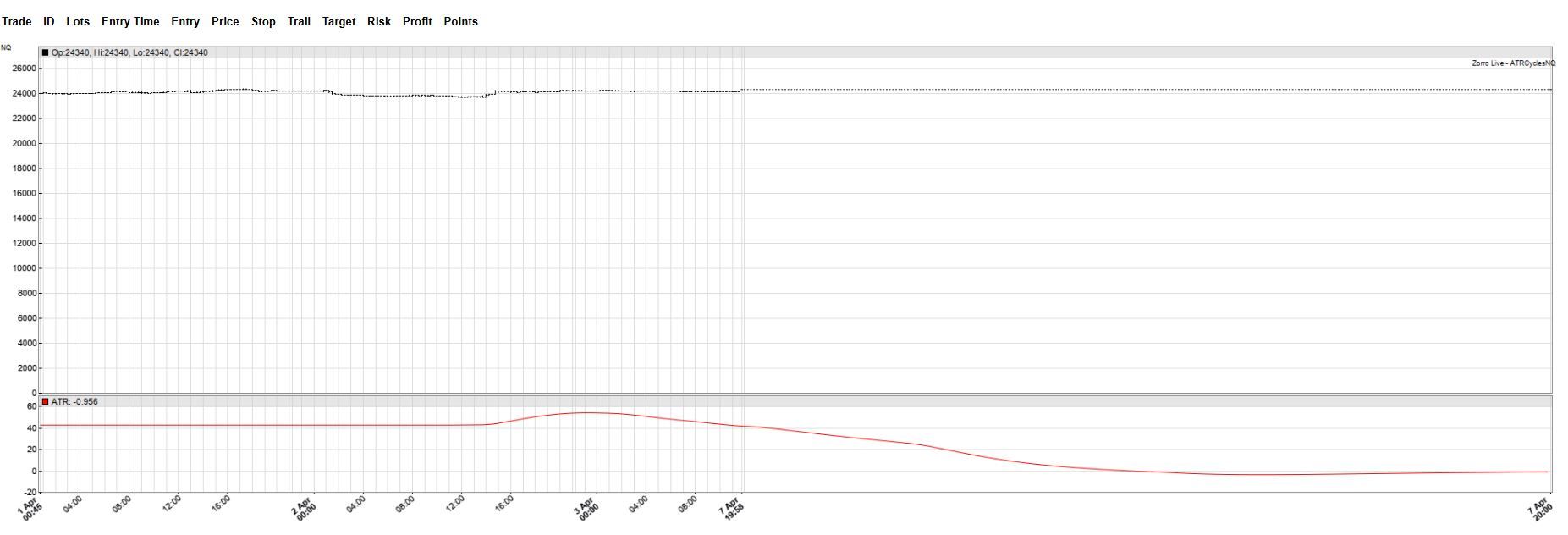 As the take profit and stop loss are defined as multiples of the ATR, having a low ATR value due to the decay causes the strategy to enter in and out of trades incorrectly.