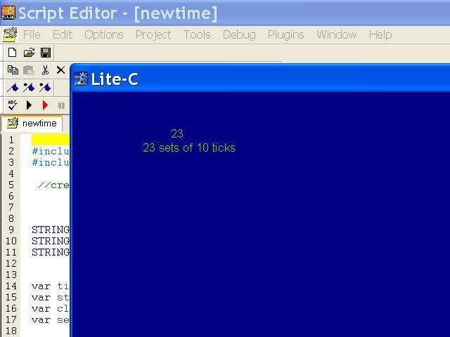 could it be something like STRING* time_passed = 0 while(1) { wait(-1) time_passed ++ }